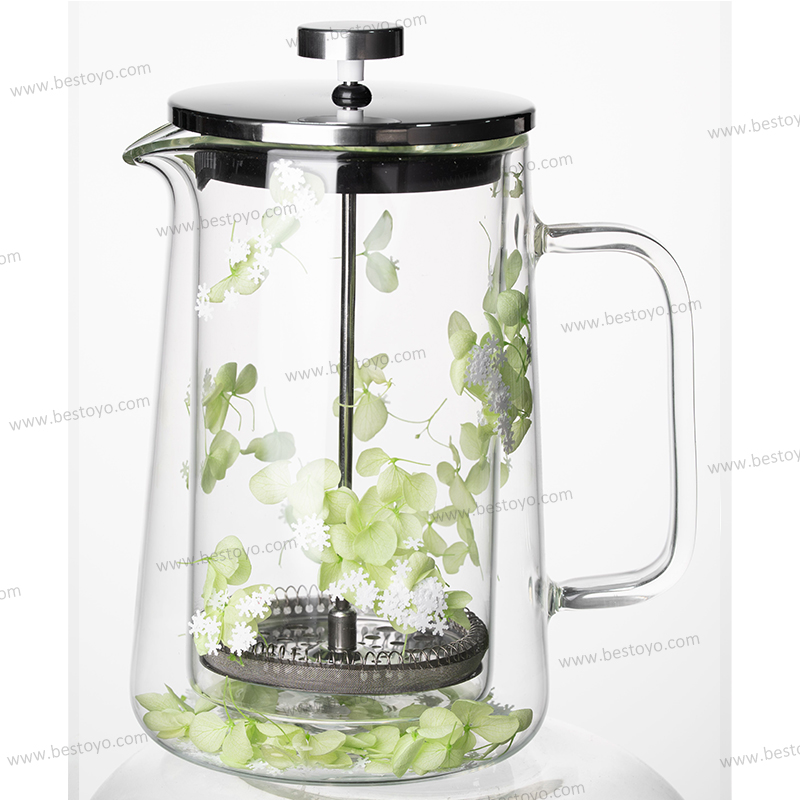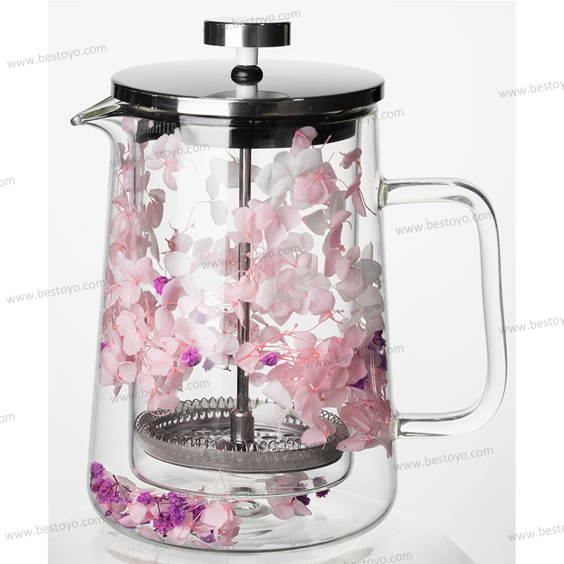 Dry flower glass press pot double layer high boron silicate glass filter press pot home use French milk frothing hand pour coffee pot