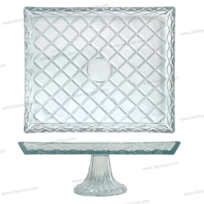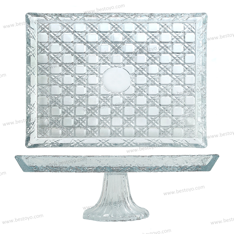 Glass tray with relief cake plate, rectangular high-value fruit dessert plate, wine utensil plate, living room dried fruit flat plate