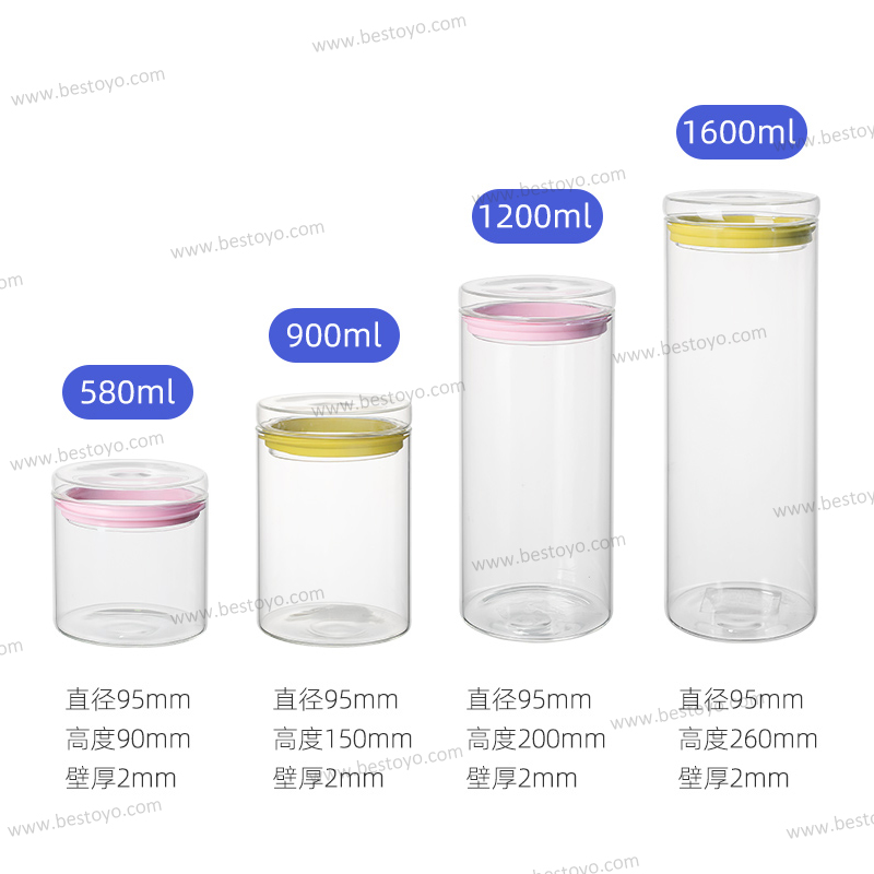 High boron silicate glass sealed jar; storage jar for home tea storage and grain storage.