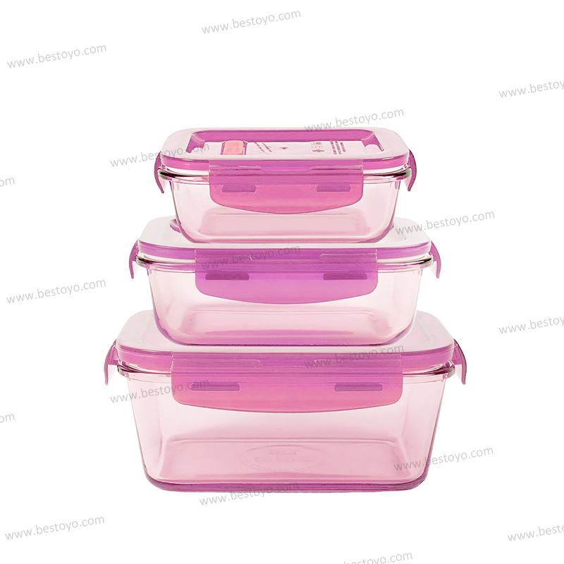 Pink square high borosilicate glass food container