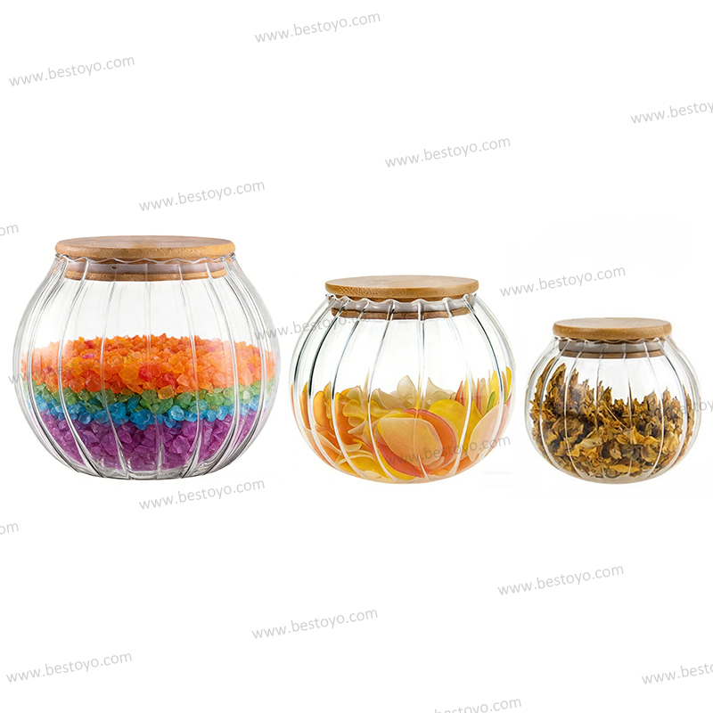 Pumpkin-Shaped Airtight Glass Jars with Bamboo Lids