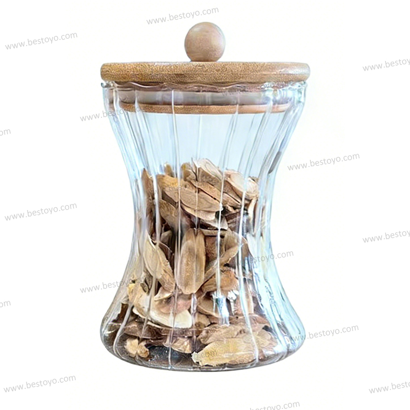 Waist-Shape Textured Glass Storage Jar with Bamboo Lid & Wooden Knob - Airtight Food Canister